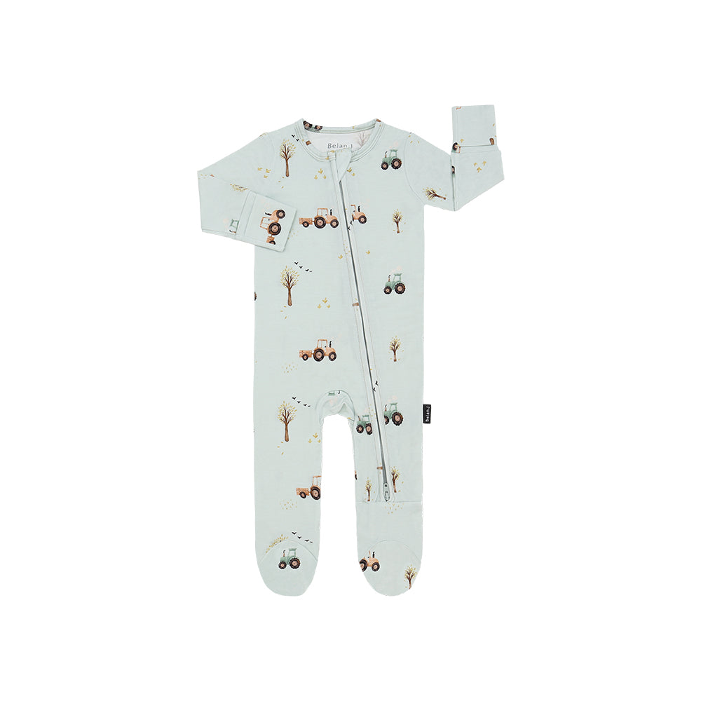Footed sleeper made in buttery soft bamboo rayon for the perfect night sleep. Bamboo is very breathable and moisture wicking which makes it the ideal fabric for infant sleepwear. 2-way zipper closure makes for easy diaper changes while fold over cuffs* and chin guard keep baby safe from scratches and pinches. Sizes 6-12M & 12-18M have silicone grippers on soles to prevent slipping.
