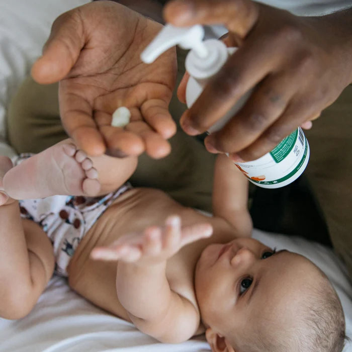 Birch Baby's Nourishing Baby Lotion, a nurturing solution for your baby's sensitive skin. Specially formulated for the most sensitive skin, EWG Verified and packaged in eco-friendly PCR plastic that's also recyclable. It's safe, deeply nourishing, and designed to cater to your little one's delicate needs, ensuring their skin stays healthy and happy.