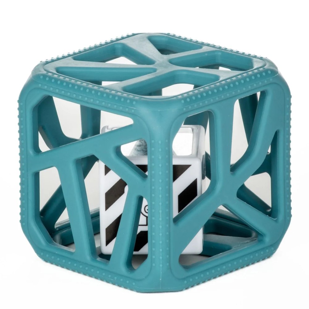The Malarkey Kids Chew Cube is the mom-created modern rattle and teether. It provides four-way sensory stimulation, including soft, textured teething edges for tender gums; large flexible holes to help baby with gripping skills plus a black and white patterned rattle with mirrors to provide stimulation for baby's ears and eyes.