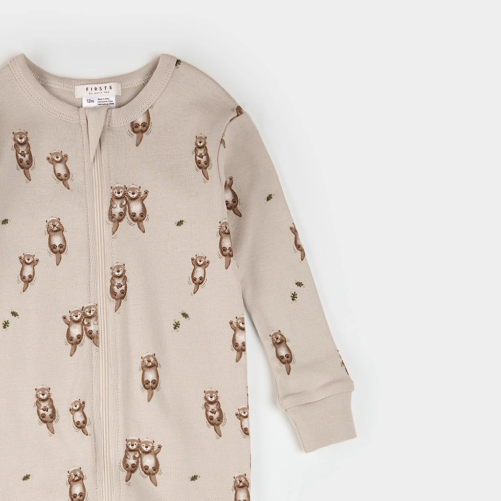 This cozy, organically grown cotton sleeper is perfect for snoozing, cruising, crawling and walking thanks to its fold-over feet design. The convertible sleeper allows it to transition from a footed sleeper to a footless style for sleeping or playing and allows you to keep your pieces a little longer while the kids keep growing. Featuring ribbed cuffs and a two-way zip, it’s as practical as it is adorable, and it’s finished with our totally adorable Otter print.