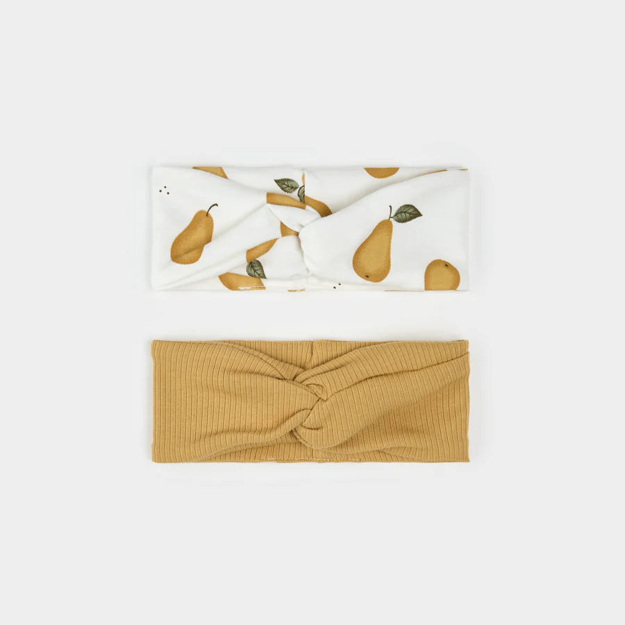The perfect finishing touch for autumn outfits. This two-pack of headbands includes one plain, and one Pear print band. They’re made with breathable materials and gently elasticated for a snug yet comfy fit. A darling gift idea for new arrivals.