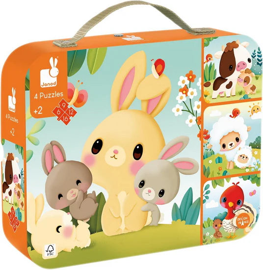 Brightly colored puzzles with stimulating images for your mini! Janod's evolving puzzles will accompany your toddler in the discovery of puzzles and they will allow them to progress at their own pace, according to the number of pieces they need.